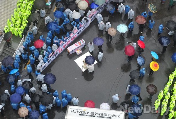 이날 애국단체회원들은 성명서를 발표하며새누리당 <황우여> 대표 민주당 <장하나> <양승조> 의원의 장례식도 함께 거행했다.