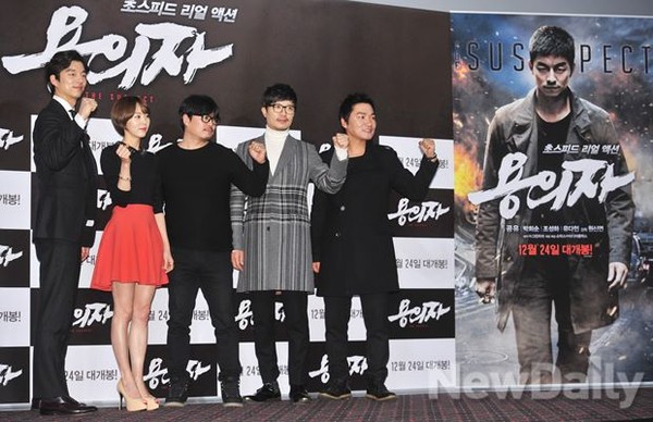 [포토]다함께 파이팅 외치는 용의자 감독과 배우들