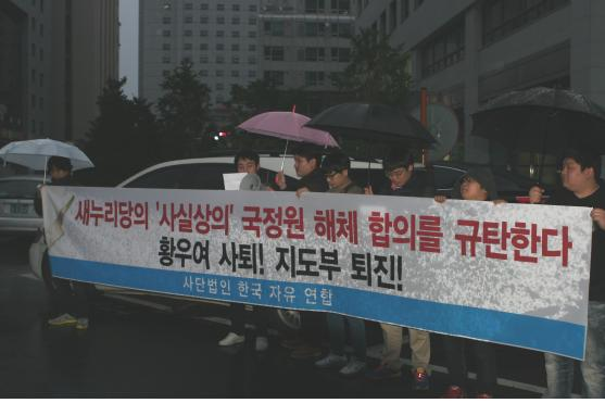 금일(12월 9일) 오전 8시 한국 자유 연합의 청년 위원회는 여의도 새누리당 당사 앞에서