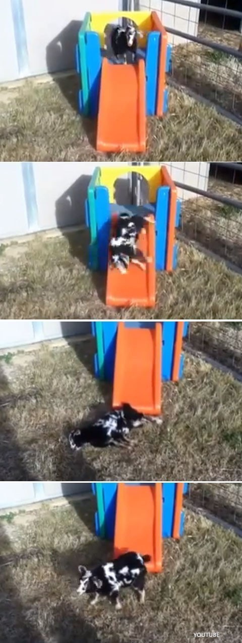 공개된 영상에는 아기 염소 한 마리가 유아용 미끄럼들을 타고 있는 모습이 담겨 있다. 이 염소는 미끄럼틀 밑을 바라보다 얼굴을 돌리기를 반복하다 미끄럼틀을 타고 내려온다.