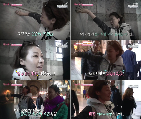 지난 6일 방송된 tvN <꽃보다 누나>에서는 이미연이 간절한 소원을 비는 모습이 공개돼 눈길을 끌었다.