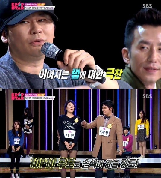'K팝스타3' 알멩팀이 독특한 편곡을 선보여 화제다.15일 방송된 SBS '일요일이 좋다-서바이벌 오디션 K팝스타 시즌3(이하 케이팝스타)'에서는 상-중-하 그룹으로 나뉜 참가자들이 경쟁을 펼치는 모습이 전파를 탔다.이날 '알멩'팀은 지난 무대에서 보여줬던 독특한 매력을 또 한번 과시하며 심사위원들을 매료시켰다.'알멩'팀은 심사위원 박진영의 '니가 사는 그 집'원곡에 여자의 마음을 더해 곡을 새롭게 해석했다. 해용의 흐르는 듯한 가성으로 시작한 도입부는 박진영을 놀라게 만들었다. 이어 최린의 수준급 랩이 이어졌고 심사위원들은 '알멩'팀의 무대를 즐기는 모습을 보였다.심사평에 냉철한 박진영은 "해용의 가성에서 정말 놀랐다. 특히 최린의 래핑은 최고다. 두 사람의 조합이 정말 좋다. 탑10까지 가능할 것 같다"며 둘을 칭찬했다.양현석 역시 "최린은 랩을 너무 잘한다. 한국에서 저렇게 랩을 하는 여자 래퍼가 거의 없다. 리듬감 좋고 가사 전달력도 좋다"며 극찬을 아끼지 않았다.유희열 역시 "한국에선 이런 혼성 듀오가 없다. 아마 유일무이하지 않을까 싶다"고 둘의 실력을 높게 평가했다.[사진 출처=SBS K팝스타3 방송화면 캡처]