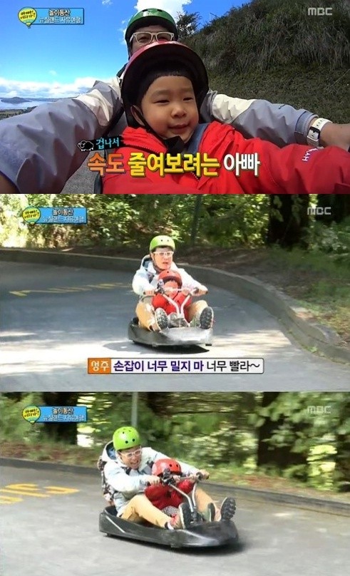 이날 아빠와 아이들은 뉴질랜드 놀이공원을 찾았다. 아빠 김성주와 무동력 카트를 타게 된 민율이는 “아빠 우리가 1등 하자”고 남다른 의욕을 드러냈다.