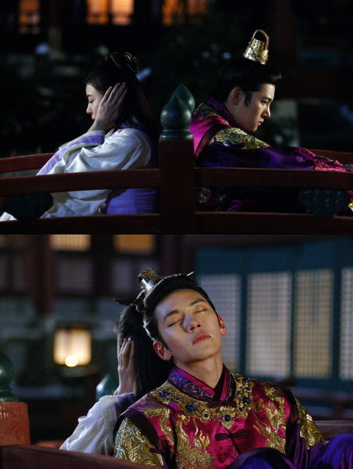 사진 속 승냥(하지원)은 눈을 감은 채 손으로 귀를 막고 있으며, 타환(지창욱)은 승냥에게 살짝 기대어 조용히 눈물을 흘리고 있어 시청자들의 궁금증을 자아낸다.