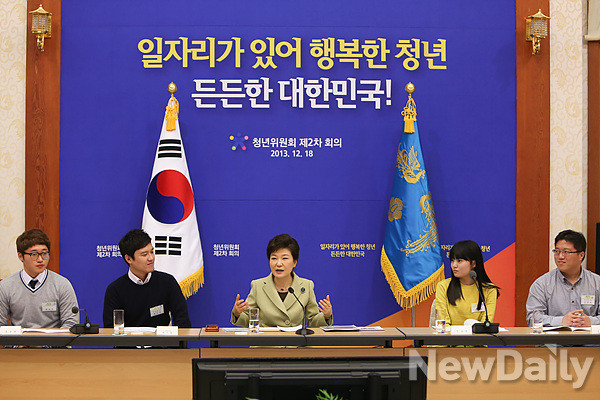 [정부가 적극적으로 도와드릴 것]이라고 약속했다.박근혜 대통령이 18일 청와대에서 열린 제2차 청년위원회의에서 인사말을 하고 있다.박근혜 대통령은 이날 청와대에서