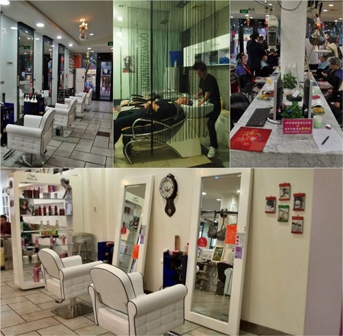 직원들이 숍에 와서 30분 정도 자기머리를 하고 영업에 들어간다.보통 타 살롱의 커트 가격은 30위안, 펌 가격은 200위안인데,