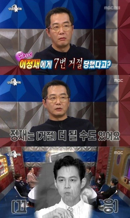 장진 감독이 배우 이정재에게 수없이 퇴짜를 당했다고 털어놨다.지난 18일 방송된 MBC <황금어장-라디오스타>에는 [집착남들의 수다] 특집으로 장진 감독, 배우 박건형, 김슬기, 가수 김연우가 출연해 솔직한 입담을 뽐냈다.