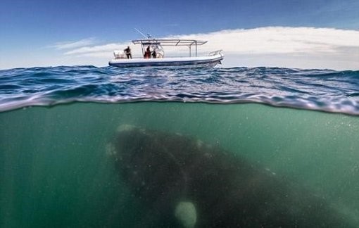 공개된 사진에는 수면 아래에 거대한 크기의 고래가 있고, 그 위에는 보트에 탄 사람들의 모습이 담겨 있다. 거대한 고래가 금방이라도 배를 덮칠 것 같은 분위기다.