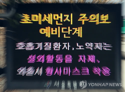 서울시내에 초미세먼지 주의보 예비단계가 발령됐다.서울시는