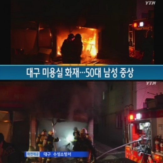 지난 21일 오후 11시 25분께 대구시 수성구 3층짜리 건물 1층 미용실에서 불이 났다.불은 10분 뒤 꺼졌으나 미용실 안에 있었던 거주자 55살 남 모 씨가 다리에 2도 화상으 ㄹ입고 병원으로 이송됐다.미용실 전면에 부착된 유리가 깨졌으며, 건물 1층 내부와 2층 외벽이 모두 불에 탔다.불은 미용실 내부 50㎡ 등을 태워 소방서 추산 2600여만원 상당의 재산피해를 낸 것으로 전해졌다.경찰과 소방당국은 폭발음과 함께 불이 났다는 2층 거주자의 진술과 도시가스 중간밸브가 열려있는 점 등으로 미뤄 가스 누출에 따른 폭발로 화재가 발생했을 가능성이 큰 것으로 보고있으며, 현재 정확한 화재 원인을 조사하고 있다.[사진 출처=YTN 뉴스 방송화면 캡처]