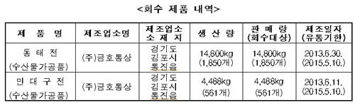 금호통상이 제조한 [동태전], [민대구전]으로,