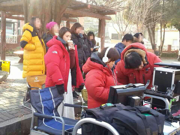 공개된 사진 속 이연희는 MBC 수목드라마 <미스코리아> 야외 촬영장에서 자신의 모습을 모니터 하는 모습이 담겨 있다.