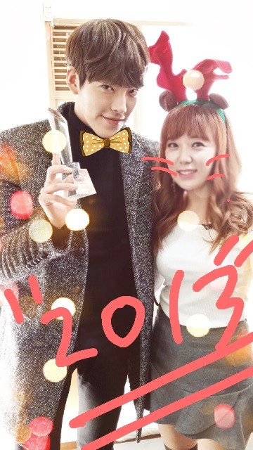 공개된 사진 속 김우빈은 트로피를 손에 쥔 채 루돌프로 변신한 하지영과 다정한 포즈로 카메라를 향해 미소 짓고 있다.
