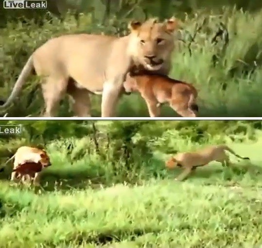 송아지를 보호하는 사자의 모습이 포착돼 눈길을 끌고 있다.최근 동영상 싸이트 유튜브에 공개된 해당 영상은 송아지로 보이는 어린 동물과 사자의 충격적인 모습을 담고 있다.영상 초반에 송아지는 사자에게 쫓기다 이내 잡히고 만다.하지만 신기한 일이 벌어진다. 사자에게 송아지가 얼굴을 부비기 시작한 것. 어리둥절한 사자는 송아지를 쓰다듬기도 하고 딴청을 피우며 마치 송아지가 자기 자신의 자식인 양 착각한 듯 행동해 눈길을 끈다.이후 송아지와 사자는 머리를 부비며 장난을 친다. 그 순간 다시 한 번 놀라운 일이 벌어진다. 어디선가 다른 사자가 송아지를 노리고 달려들자 송아지와 급격히 친해지게 된 사자가 이 사자의 접근을 막고 송아지를 지킨 것.그 사자는 송아지를 지키기 위해 다른 사자와 싸우며 다른 사자를 쫓아낸다. 이뿐만 아니라 송아지를 가슴에 품기도 한다.송아지를 덮치기 위해 달려들었던 사자는 놀란 듯 그 둘을 응시하며 영상은 끝난다.송아지 보호하는 사자 영상을 접한 네티즌들은 "어떻게 이럴 수 있지?", "사자 정말 멋있다", "영락없는 엄마랑 아기네", "이건 기적이야", "뭔지 모르지만 흐뭇하네" 등의 반응을 보였다.[사진 출처=해당 영상 캡처]
