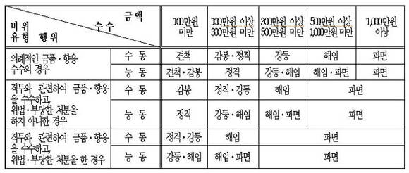 100만원 이상 금품 등을 받은 경우 [중징계] 처분토록 되어 있다. -