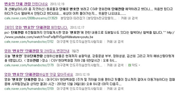 포털사이트를 살펴보면, <변호인>의 단체 관람을
