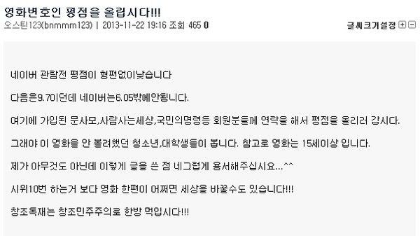 평점을 올리러 가자"는 선동적인 내용을 담고 있었다.