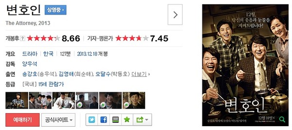 영화 변호인의 유례없는 흥행성적과 높은 평점이,