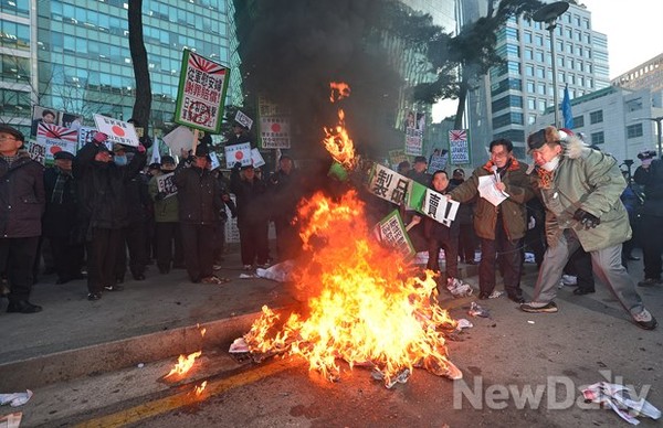 대한민국어버이연합을 비롯한 애국단체가 27일 오후4시 일본대사관 앞에서 아베 신사참배를 규탄하는 기자회견을 가졌다.