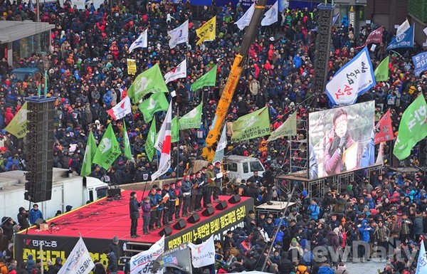 28일 서울 시청광장에서 민주노총이 노조파업을 지지하는