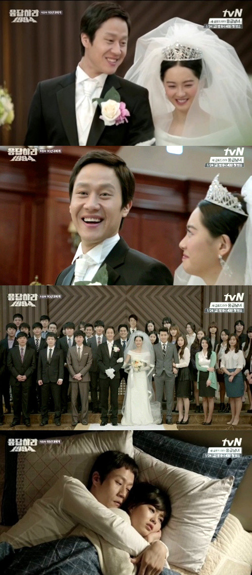 이어 성나정과 김재준의 2002년 6월 22일 결혼식 모습이 그려졌다. 나정의 결혼 상대는 친오빠처럼 20년을 줄곧 지내온 쓰레기였다. 2013년 현재의 두 사람은 아이 셋을 둔 부모였고 나정은 “오빠, 여보, 산이 아빠”라고 부르며 애정 가득한 모습을 보였다.