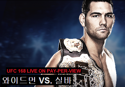 [UFC 168 ‘WEIDMAN vs. SILVA 2’ 대진표]- 29일(한국시각) 오전 11시 30분 수퍼액션 생중계크리스 와이드먼 VS 앤더슨 실바 (미들급타이틀매치)론다 로우지 VS 미샤 테이트 (여성부 밴텀급타이틀매치)조쉬 바넷 VS 트래비스 브라운 (헤비급매치)짐 밀러 VS 파브리시오 카모에스 (라이트급매치)더스틴 포이리에 VS 디에고 브란다오 (페더급매치)크리스 리벤 VS 유라이어 홀 (미들급매치)글레이슨 티바우 VS 마이클 존슨 (라이트급매치)데니스 시버 VS 매니 감부리안 (페더급매치)존 하워드 VS 시야르 바하두르자다 (웰터급매치)윌리엄 마카리오 VS 바비 볼커 (웰터급매치)로비 페럴타 VS 이스티븐 파얀 (페더급매치)