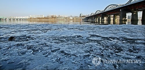 올겨울 한강에서 첫 얼음이 관측돼 화제다.인천기상대는 29일 오전 한강물이 올겨울 들어 처음으로 결빙됐다고 전했다. 이는 평년보다 보름 빠르고 작년보다 닷새 늦은 것.한강 결빙 관측지점은 서울을 통과하는 한강 수계의 중앙 지점인 한강대교의 노량진 쪽 2번째와 4번째 교각 사이에서 상류 쪽으로 100m 부근으로 인천기상대가 결빙 관측을 담당하고 있는 곳이다.기상대는 "대륙고기압이 확장하면서 약 5km 상층에 있던 영하 35도 이하의 찬 공기가 한반도 부근까지 내려와 며칠 동안 서울 아침 최저기온이 영하 10도 내외로 떨어져 오늘 아침 한강이 결빙된 것"이라고 설명했다.한편, 기온은 이날 낮부터 대부분 지역에서 영상으로 올라가고 30일부터는 평년 수준을 회복하며 추위가 점차 풀릴 것으로 보인다.[사진 출처=연합뉴스]