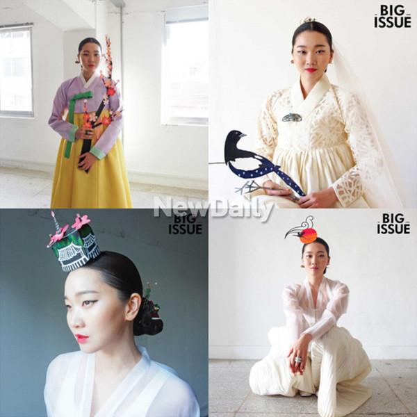 장윤주가 단아한 한복 자태를 드러냈다.모델 장윤주가 홈리스의 자립을 돕는 잡지 빅이슈의 새해 첫 표지모델로 나섰다.