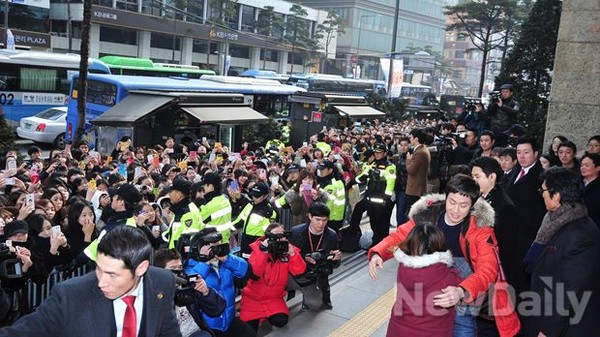 배우 정우의 시청률 공약 프리허그 이벤트가 31일 오전 서울 중구 롯데백화점 앞에서 열렸다. 이날 프리허그는 정우가 쓰레기로 열연 한 tvN 금토 드라마<응답하라 1994> 공식 트위터를 통해 내 건 "시청률 10%이상 시, 명동 거리에서 프리허그"라는 공약을 지키기 위해 진행 됐으며, 정우를 보기 위해 모인 인파들로 명동 거리가 가득찼다.