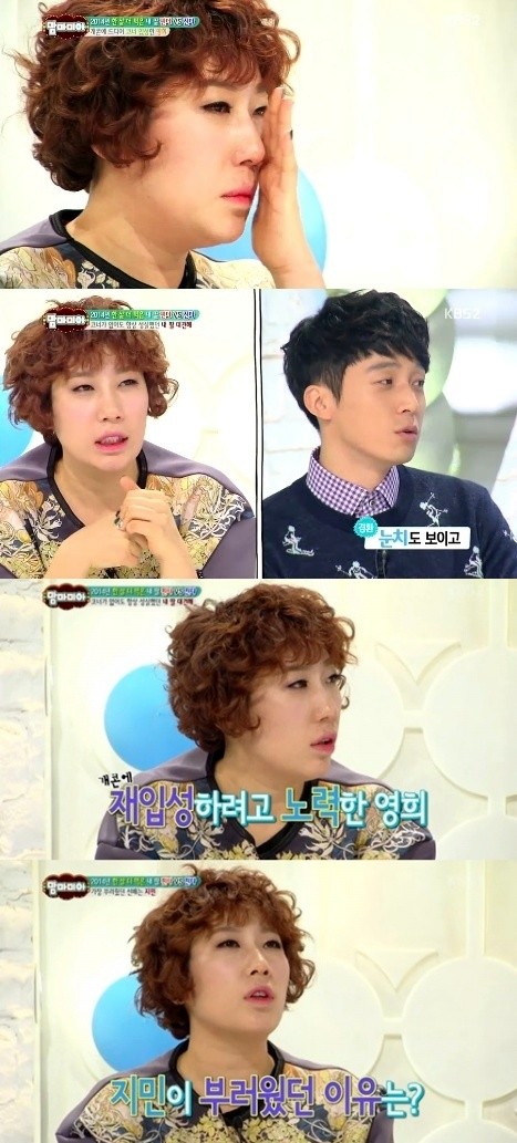 개그우먼 김영희가 고충을 털어놓으며 눈물을 보였다.지난 1일 방송된 KBS 2TV <맘마미아>에서는 ‘2014년 내 딸 핀다 or 진다’라는 주제로 엄마들의 따뜻한 속마음 토크가 펼쳐졌다.