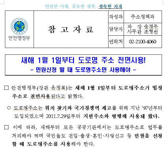 얼마나 깔끔하고 보기 좋은가?<안전행정부 보도자료 전문>