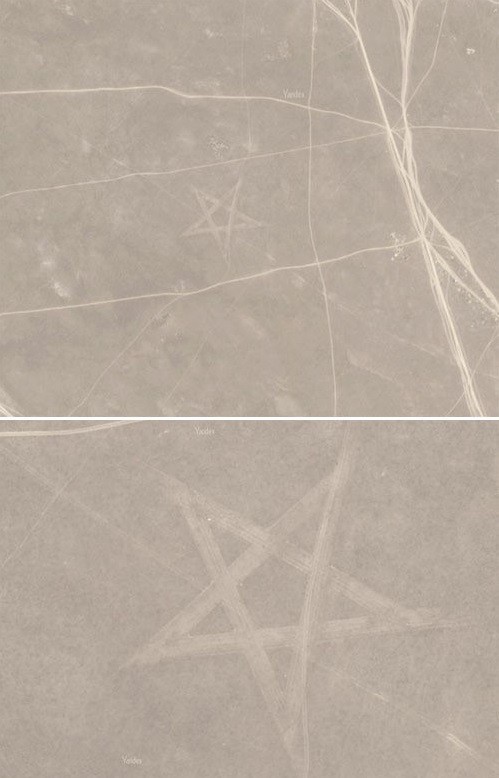 직경 200m에 달하는 별 무늬가 위성사진에 포착돼 눈길을 끌고 있다.카자흐스탄 서부의 악타우 지역을 촬영한 위성사진에서 광대한 들판에 새겨진 것으로 보이는 초대형 별 모양이 발견됐다.해당 사진에 찍힌 별 모양은 다섯 개의 꼭짓점을 중심으로 매우 정교하게 그려져 있다. 대충 그려진 별 모양이 아니라는 뜻.현재 이를 본 많은 이들은 200m 미스터리 별에 대해 소련 시절의 군사 시설이라는 분석을 내놓고 있다.사진의 정확도가 떨어져 명확한 정체를 밝히기 어렵지만 공군 기지처럼 보인다는 해석이 주를 이루고 있다.하지만 일부 네티즌들은 비밀 종교집단의 신호 혹은 외계인들이 남겨 놓은 신호라는 주장도 제기돼 더욱 화제를 모으고 있다.한편, 200m 미스터리 별 사진을 접한 네티즌들은 "200m 미스터리별 정체가 뭘까" "진짜 외계인이 있나봐" "외계인이라도 왔다 갔나" "군사시설 같지 않나?" "위성사진에 저런거도 다 찍히네" 등의 반응을 보였다.[사진 출처=온라인 커뮤니티 게시판]