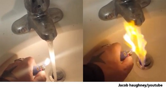 불타는 수도꼭지 영상이 화제다.최근 동영상 사이트 유튜브에는 어떤 사람이 자신의 집 욕실 수도꼭지에 불을 붙이는 모습을 담은 영상이 게재됐다.영상 속 남자는 카메라를 들고 화장실로 이동해 수도꼭지에 물을 틀고는 흐르는 물에 불을 붙인다.상식적으로 물에 불을 붙이는 일은 불가능하지만 이 영상 속에서는 가능하다.남성이 수돗물에 라이터를 갖다 대자 놀랍게도 활활 불길이 타오르며 펑 터지는 모습이 그대로 영상에 담겨 보는 이들을 놀라게 만든다.이처럼 불타는 수독꼭지가 목격된 이유는 해당 게시물을 올린 게시자가 살고 있는 미국 노스 다코다 지역 인근에 있는 석유 시추 지역에서 인화성 물질이 수돗물에 유입됐기 때문으로 보인다.게시물을 올린 남성은 오랜 기간 이 수돗물로 세수와 양치를 해왔다고 전했다.현지 언론은 석유 시추 과정에서 물의 압력을 이용해 돌을 파쇄하는 과정을 거치는데 이 과정에서 석유의 일부가 하수도 등으로 유입된 것으로 보인다고 보도한 바 있다.한편, 불타는 수도꼭지 영상을 접한 네티즌들은 "물에 불이 붙다니 무섭다" "기괴하네" "저 물 마시면 죽겠다" "물에 석유 섞이면 어떡해" "우리나라는 저런 일 없겠지?" 등의 반응을 보였다.[사진 출처=해당 영상 캡처]