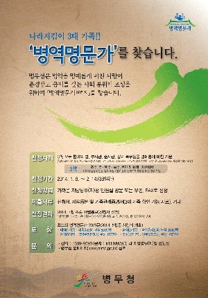 [올해의 병역명문가]를 찾는다고 밝혔다.[병역 명문가]는