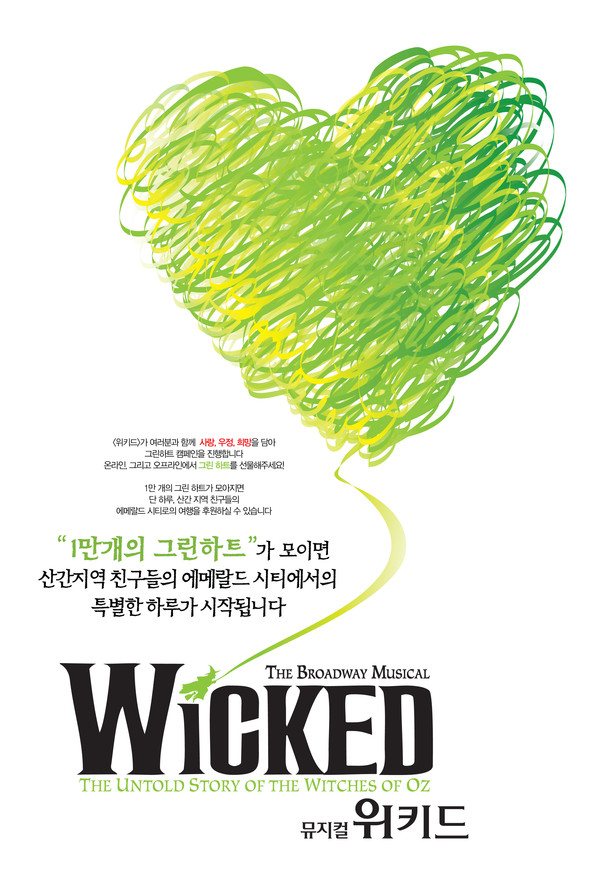뮤지컬 <위키드>가 2014년 새해를 맞아 따뜻한 도네이션 ‘1만 그린하트 캠페인’을 마련했다. 온·오프라인에서 1만 명의 그린하트를 모아서 산간지역 어린이들을 <위키드>에 초대하는 것.그린하트 캠페인은 온라인에서 2014년 1월 1일 0시 <위키드> 공식 페이스북 페이지에서 시작됐으며, 그린하트 캠페인 포스팅에 하트(♥)로 코맨트를 남기면 참여할 수 있다. 오프라인 기부처인 <위키드> 공연장 샤롯데씨어터 등에서도 10일까지 그린하트 캠페인이 진행된다.