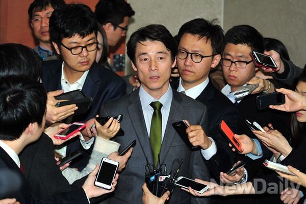 <송호창> 새정치추진위원회 소통위원장이7일 오전 여의도 국회 정론관에서 기초선거 정당공천제도의 폐지를 촉구하는 기자회견을 마친 뒤 질문에 답변하고 있다.