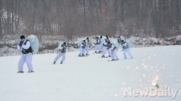 특전사들의 기합소리로 메아리가 가득찼다.이날 실시된 동계훈련은