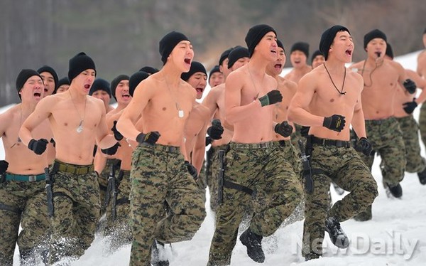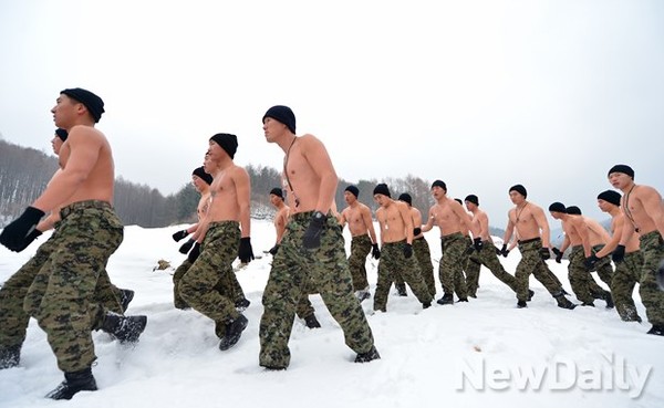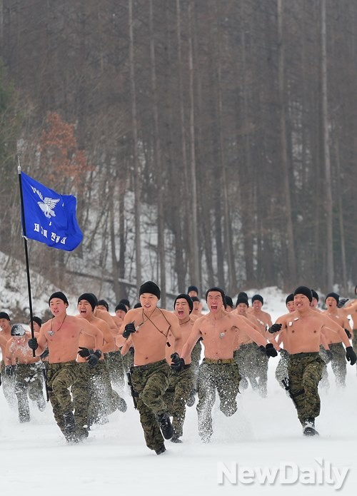 특전사들의 기합소리로 메아리가 가득찼다.이날 실시된 동계훈련은