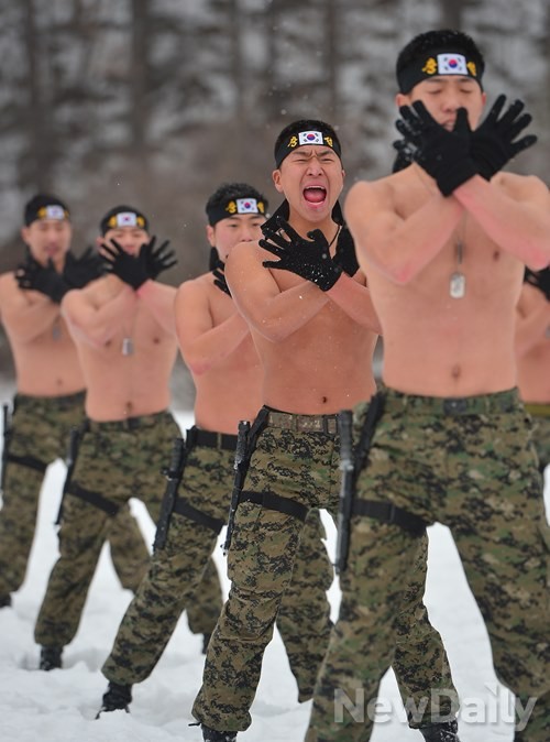 특전사들의 기합소리로 메아리가 가득찼다.(평창=정상윤)