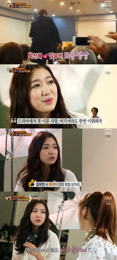 박신혜가 김우빈의 매력을 극찬했다.지난 8일 방송된 SBS <한밤의 TV연예>에서 박신혜가 드라마 <상속자들> 종방연에서 김우빈과의 깜짝 포옹을 언급해 이목을 끌었다.