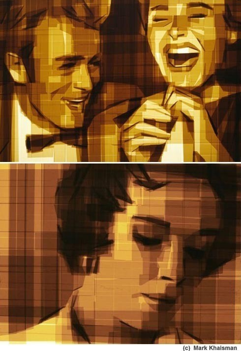 이 그림은 우크라이나 출신의 마크 카이스만이 포장용 테이프로 완성시킨 것. 러시아 모스크바에서 건축과 시각 예술을 공부한 그는 누런빛의 테이프를 이어 붙이는 방식으로 명암을 줘 극적인 느낌을 살렸다.