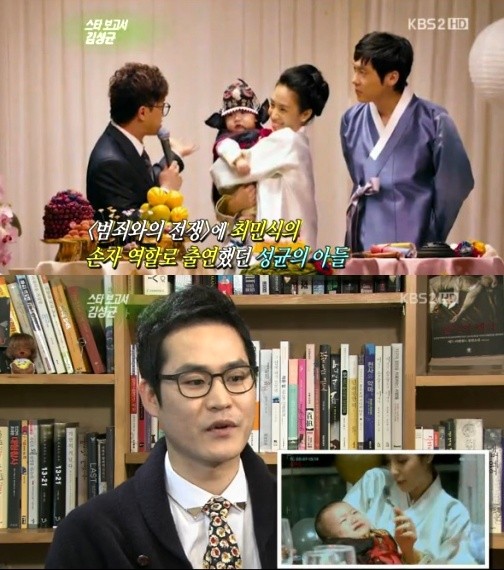 김성균은 지난 9일 방송된 KBS 2TV <해피투게더 시즌3>에 출연해 “<범죄와의 전쟁> 돌잔치 장면에 나온 아이가 진짜 내 아들이다”고 털어놨다.