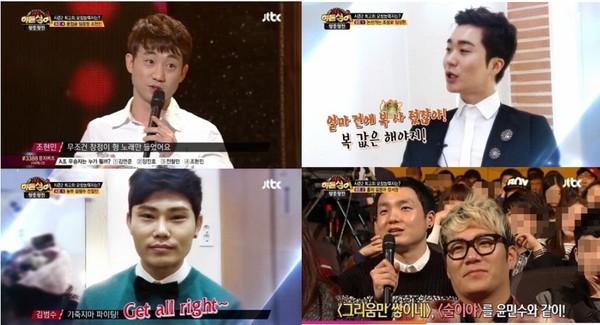 JTBC '히든싱어2'가 자체 최고 시청률을 경신했다.12일 시청률조사회사 TNms에 따르면 지난 11일 방송된 JTBC '히든싱어2'의 왕중왕전 첫회는 6.1%(전국 유료매체 가입가구 기준)의 시청률을 기록했다.이는 '히든싱어2'의 첫 회부터 지금까지 가장 높은 시청률로 더욱 눈길을 끈다.또한 지난 '히든싱어' 시즌1에서 가장 시청률이 높았던 왕중왕전 마지막 회 방송의 시청률인 5.2%보다 0.9% 높은 시청률로 '히든싱어2'의 인기를 입증했다.히든싱어2 왕중왕전을 접한 네티즌들은 "역대 최고였다" "진짜 잘 부르더라" "조현민이 이길줄 알았어" "어제 대박 재밌었어!" "아 히든싱어 완전 소름" 등의 반응을 보였다.한편, 이날 방송에서는 A조에서 '용접공 임창정' 조현민 씨가 최다 득표로 우승을 차지했다.조현민 씨와 함께 A조에 있던 '여고생 아이유' 김연준 씨는 이날 109표를, '팝페라 신승훈' 장진호는 239표를, '농부 김범수'는 241표를 각각 획득했다.[사진 출처=JTBC 히든싱어2 방송화면 캡처]