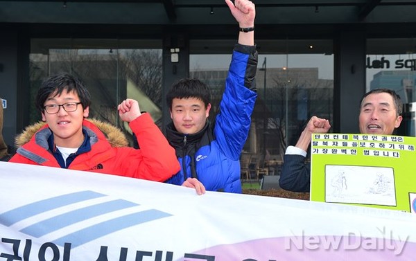 전국 각지에서 모인 대한청소년나라사랑연합 회원들이 북한 인권의 실태를 알리기 위한 기자회견을12일 오전11시 서울 종로구 세종로 광화문 KT 사옥 앞에서 진행했다.중, 고등학생으로 구성된 이들은 <북한인권법안> 제정을 요구하며북한인권문제 문제해결을 위해 적극 참여해 줄 것을 당부 했다.