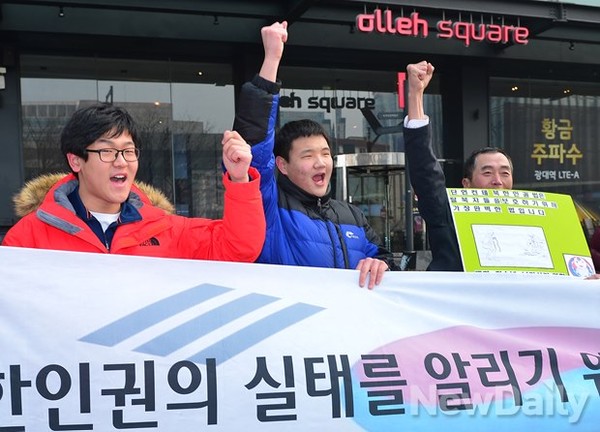 전국 각지에서 모인 <대한청소년나라사랑연합> 회원들이 북한 인권의 실태를 알리기 위한 기자회견을12일 오전11시 서울 종로구 세종로 광화문 KT 사옥 앞에서 진행했다.중, 고등학생으로 구성된 이들은 <북한인권법안> 제정을 요구하며북한인권문제 문제해결을 위해 적극 참여해 줄 것을 당부 했다.