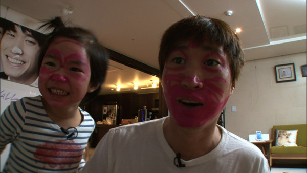 이를 발견한 타블로는 “그게 뭐냐”며 놀라다가도, 이내 서로의 얼굴에 그림을 그려주고 카메라 앞에 가서 자신들의 모습을 비춰보며 즐거워했다. 타블로 부녀는 흡사 ‘핑크팬더’를 연상케 한 보는 이들로 하여금 폭소를 자아냈다.