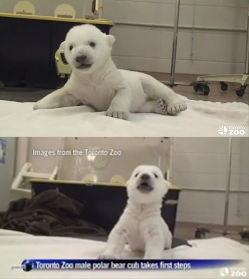 지난 8일(현지시간) 캐나다의 외신 등은 현지 토론토 동물원에서 태어난 생후 2개월 된 수컷 새끼 북극곰이 걸음마를 떼는 모습을 공개했다.