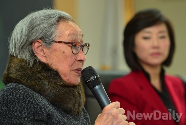 고령의 위안부 피해자 할머니들이 성의 있는 사죄를 요구하며