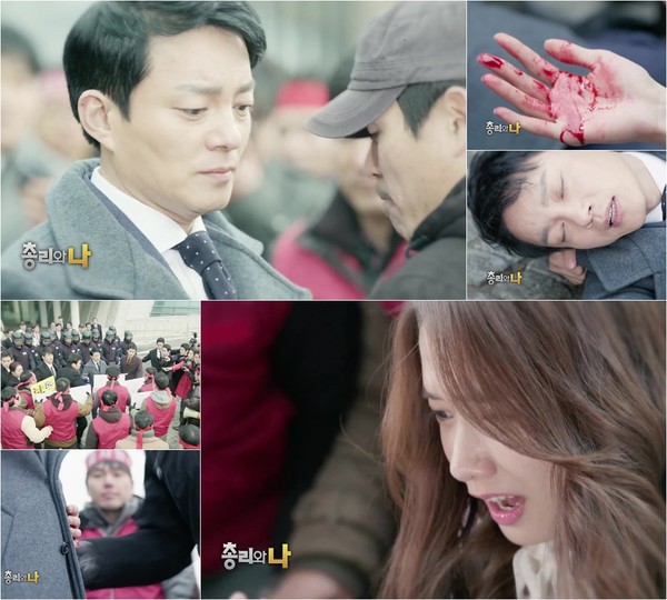 KBS 2TV 월화드라마 <총리와 나>(극본 김은희 윤은경, 연출 이소연)의 11회 예고편에서 이범수가 습격 당하는 모습이 등장해 향후 전개에 관심을 높이고 있다.지난 13일 방송된 KBS2 <총리와 나> 10회 방송 이후 공개된 11회 예고편 말미에 명심물산 시위 현장을 방문한 권율(이범수)이 괴한에게 칼에 찔려 쓰러지는 장면이 등장해 시청자들을 깜짝 놀라게 했다.