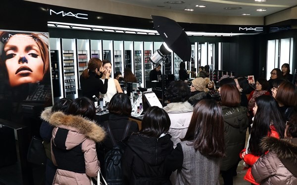 ▲ 메이크업 전문 브랜드 맥(M•A•C)이 겨울 메이크업으로최근 인기를 얻고 있는 분위기 있는 [음영 메이크업] 시연행사를신세계 백화점 영등포점에서 진행하고 있다.메이크업 전문 브랜드 <맥(M•A•C)>이